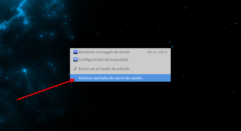 Sin embargo, desde cierta versión de Plasma 5, ese menú se eliminó y sólo es posible cerrar la sesión desde el lanzado de aplicaciones estándar.