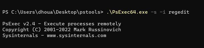 En primer lugar deberemos descargar un paquete de utilidades que incluye <psexec64.exe>, descomprimimos el fichero zip, abrimos una consola en la ruta donde se han dejado los ficheros descomprimidos y ejecutamos la utilidad <psexec64.exe>
